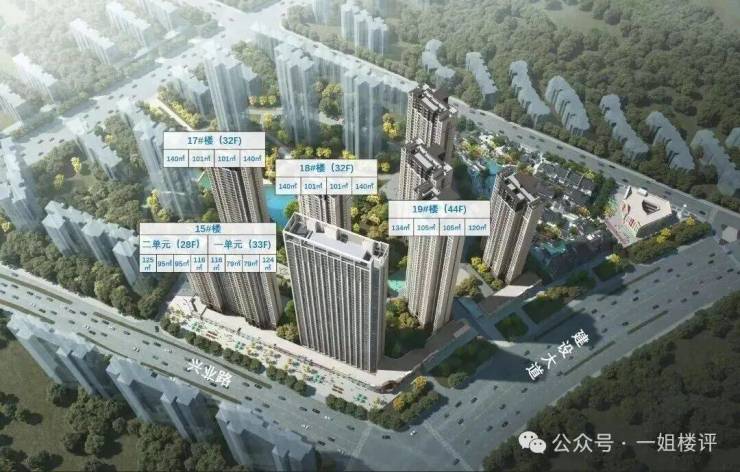 在售的4栋楼均为2梯4户的结构,其中15号楼共33层,17、18号楼为32层,19号楼为44层。共包含建面约79-140平房源。既有新房市场非常罕见的小户型(建面约79-95平),又有功能性更强的三房(建面约101-105平),还有舒适性三房两卫(建面约116-134平)及改善四房两卫(建面约140平)。