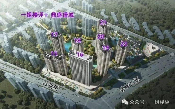 鼎盛璟城总建面约23万方,共包含8栋高层/超高层等,目前已经推出了15、17、18、19号楼,也是当下的主推楼栋。