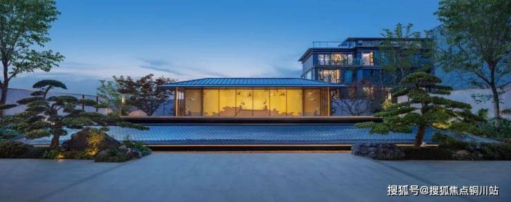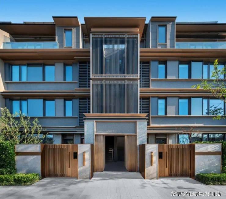 从项目叠墅的外立面来看,楼栋的顶部提取了宋风标志性的挑檐与木作构件元素,标准层高约3.3米,采用铝板、石材、LOW-E玻璃打造,整体层次感强,呈现出具有现代感典雅的宋风立面。