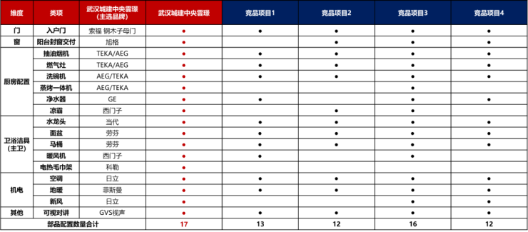 (武汉城建中央雲璟及竞品项目主选精装品牌和配置对比)