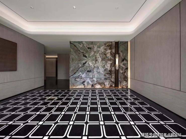 地上、地下双精装大堂,均按超五星级酒店标准打造。地面采用艺术拼花石材与岩板,墙面饰以宝格丽蓝岩板,一寸一景,奢质尽显。这已不仅是功能空间,更是一场归家的美学洗礼。