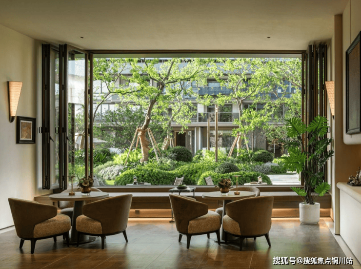 突破传统社区功能边界,将度假场景融入归家动线。超百米风雨连廊,挑高定制铝板搭配白玫瑰石材立柱,覆盖归家动线,红枫、香橼等绿植沿廊生长,将功能性转化为生活意趣。五感疗愈自然花园精选12株适应上海气候的乌桕,春夏季绿荫如盖,秋日红叶似火,“两季有果、三季有花、四季常青”的生态画卷,让都市人触摸自然脉搏。