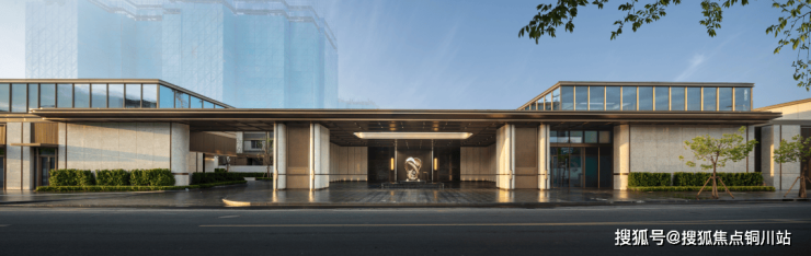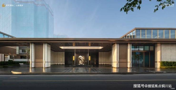 社区主入口打造百米界面与70米艺术长廊,《鎏光之礼》雕塑与水景演绎东方聚财美学。