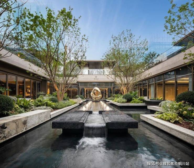 穿过会客厅,是以米兰森皮奥内公园与三亚艾迪逊为灵感打造的水森庭院。黑金沙铺就大尺度水院,点缀范思哲黑与潘多拉奢石,沉稳而高贵。