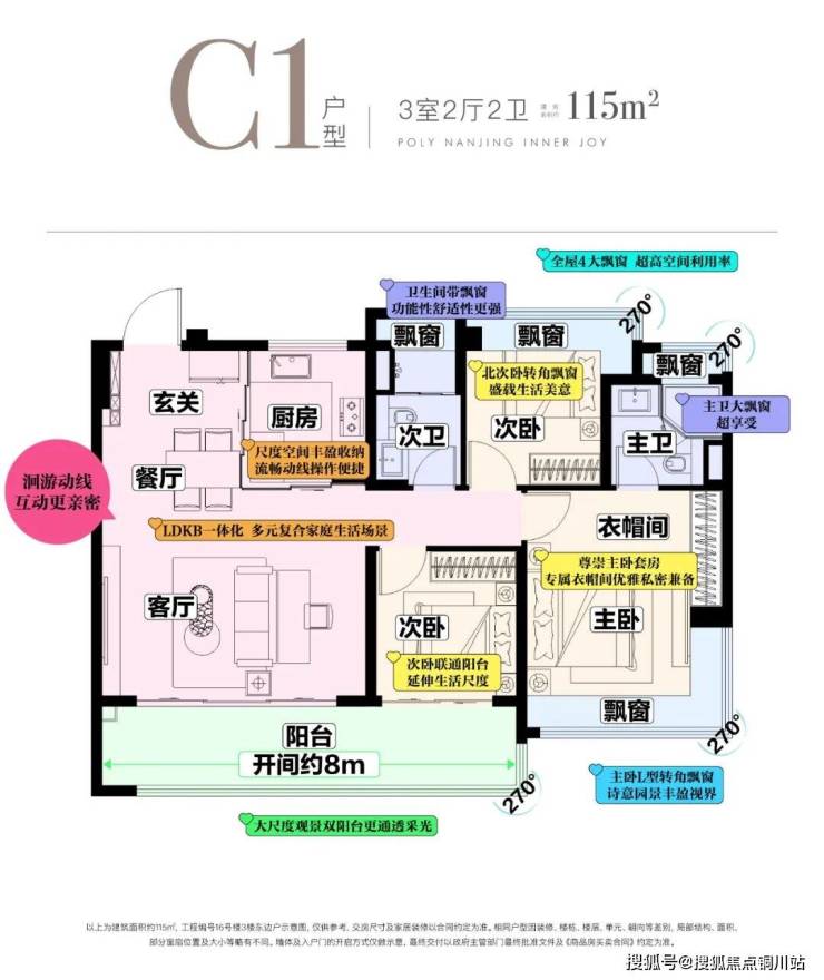 建筑面积约115㎡三房两厅两卫:14、16号楼的东边户,直面小区中心园林景观,约8米开间双阳台、约5.3米开间大横厅,全屋4个飘窗,赠送面积大,主卧270°飘窗。