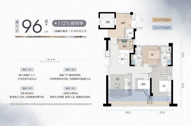 独立电梯前室:这部分空间不计入产权面积,但可作为业主私享的入户缓冲区,且增加了收纳功能与居家私密性。