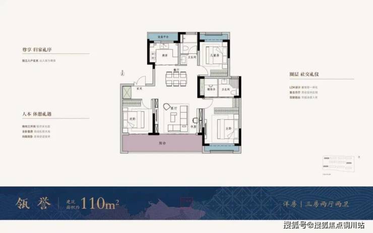 建面约110㎡(三房两厅两卫):飞机户型空间利用率极高,进门玄关能够打造储物空间,餐客厨一体化设计,让整个公区更加完整,南向双阳台更延伸了活动空间和视野。