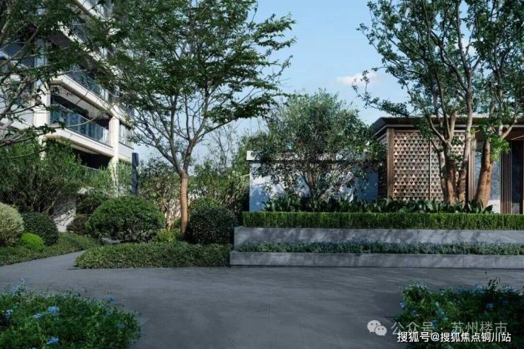每个单元都有专门设计的入户景墙,专属定制灯箱,搭配多层次花境植被,这样的细节感,在整个苏州楼市并不多见。