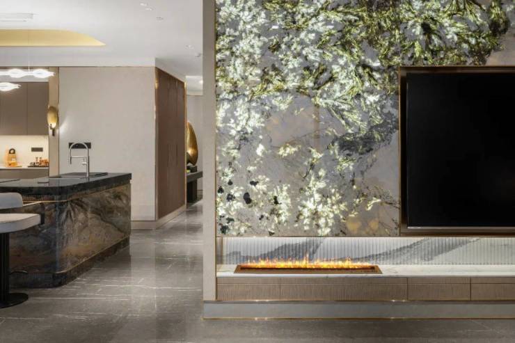这样大面积铺装奢石,就是让地面、墙面展现浑然天成的温润美学。豪不夸张地说,黄浦湾堪称武汉顶豪奢石“博物馆”。