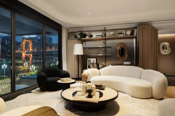 非艺术不宸系,嘉宸汲取世界级滨水豪宅建筑的微弧艺术灵感,融入嘉陵江的江水流线,建筑整体采用270°湾流式曲线立面,柔和流畅的曲线,更加映衬北滨头排的江水灵动,为两江四岸增添更多艺术神彩。