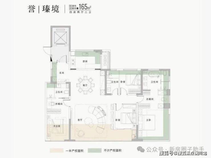 建面约165㎡四房,南向面宽可达约16.2m,主卧有270°观景,双套房设计,还有很多赠送的空间。