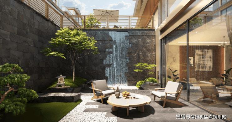 建面约 428㎡阔尺合院:作为样板间主力户型,以 “三院围合 + 全明地下” 刷新奢居认知。入户庭院采用苏州沧浪亭造景手法,叠水水景与宋式菱格纹美人靠相映成趣;下沉庭院通过 6.2 米挑高的全景落地窗与地下空间相连,即便阴雨天气也能让阳光洒满酒窖与家庭影院。地上四层的天空院子配备防腐木铺装与户外烧烤台,站在此处可远眺宾王路车水马龙与三大公园的苍翠,实现 “身在院中,心观天下” 的格局。