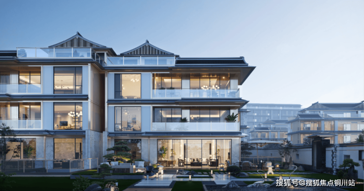 提取盛唐雅宋建筑精髓,融东方礼序、山水院落。建筑型制汲取盛唐大明宫精神气韵,以三重檐、恢弘官帽的高规格形制展现富丽庄严。以宋代名画《溪山行旅图》为灵感,打造一进府门怡园、二进人文雅园、三进山水游园的诗意画卷,同时将展翼飞檐、天青挂落等经典中式元素进行当代转译,传递东方人文厚韵。