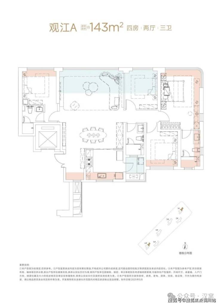 该户型设计非常前卫,采用创新“双全景舱”概念设计,实现约45㎡超大IMAX环幕厅,一线江景尽收眼底,搭配约2.5米高落地玻璃,模糊室内外界限;主卧采用270度U型玻璃幕设计,实现观江视野最大化。可改三套间的设计满足高端客群的私密生活享受,入口处设计创新X空间,实现高端品质生活场景演绎。但是,厨房尺度有所压缩,中部墙体封闭要等样板间开放验证,还有西晒问题显著,夏季需做好防护。