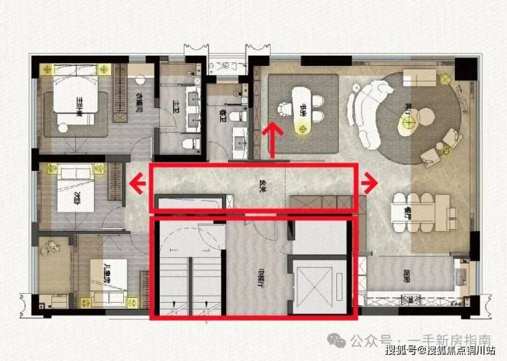 拓展后使用率能有约98%,比肩以往约200㎡大平层的居住体验