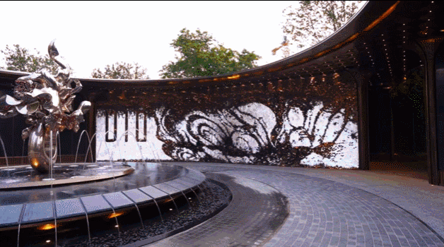 对话宝格丽表盘美学,入口瑰丽广场采用AI技术创作繁花艺术雕塑,并以奢石与安哥拉黑结成“繁花表带”水景,地面上万块马蹄石塑造繁花万象,缔造奢华归家体验。