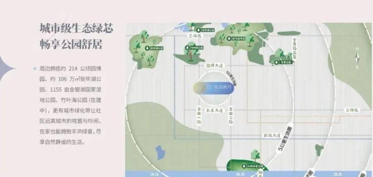 周边有园博园、张毕湖公园、金银湖国家湿地公园以及正在建设中的竹叶海公园等,可供居民休闲娱乐。