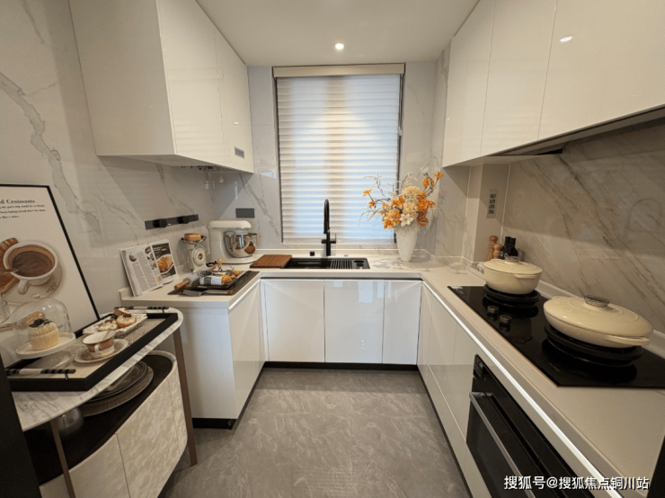 厨房创新采用分区设计:“大卡”爆炒区满足中式烹饪的畅快,“小卡”轻食区容纳咖啡机与小家电。