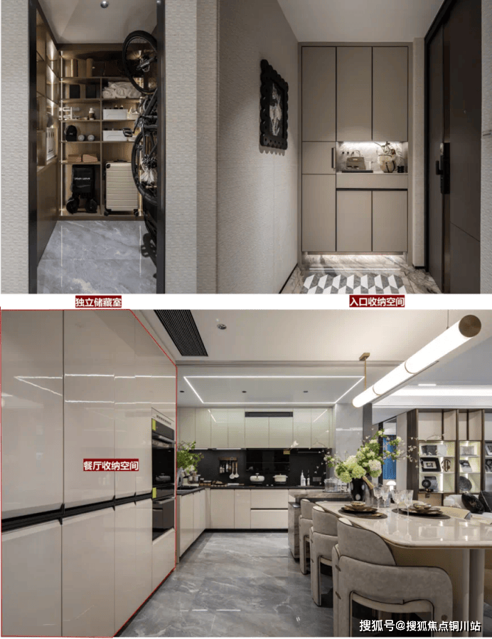 以142m户型为例,每户都设有专门的储存空间。可作为家庭玄关使用。当代人喜欢的骑行、露营装备,小孩的玩具与推车,家人非应季的鞋靴,都有了可供收纳的场地。