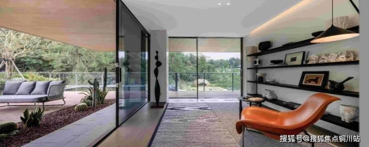 每层延展的屋檐下,是归家院、活动院、景观院、颐养院、生活院、主卧院、儿童院共七重院落。景观游线将不同功能空间有机串联起来,真正实现“移步换景”,整面的玻璃落地窗既丰富视野体验,也将充足的光照引入房间,让生活与自然相融。