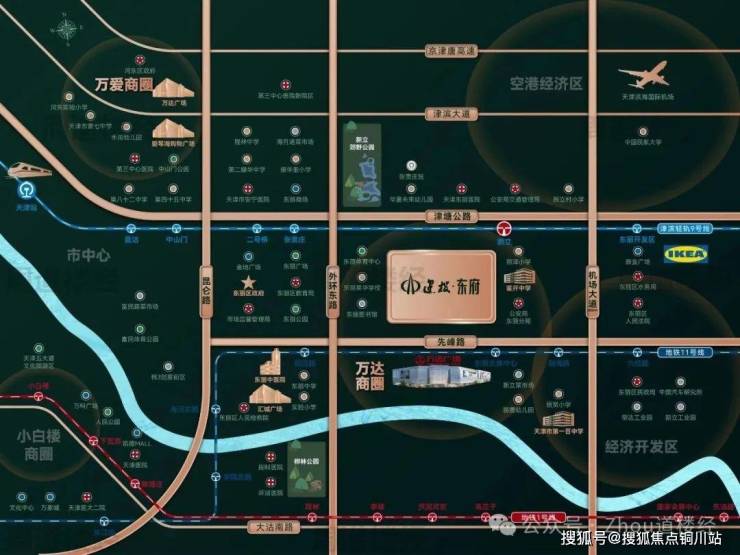 直线距离约500m地铁11号线(东丽文化中心站)双轨环伺,轻松连通津滨双城
