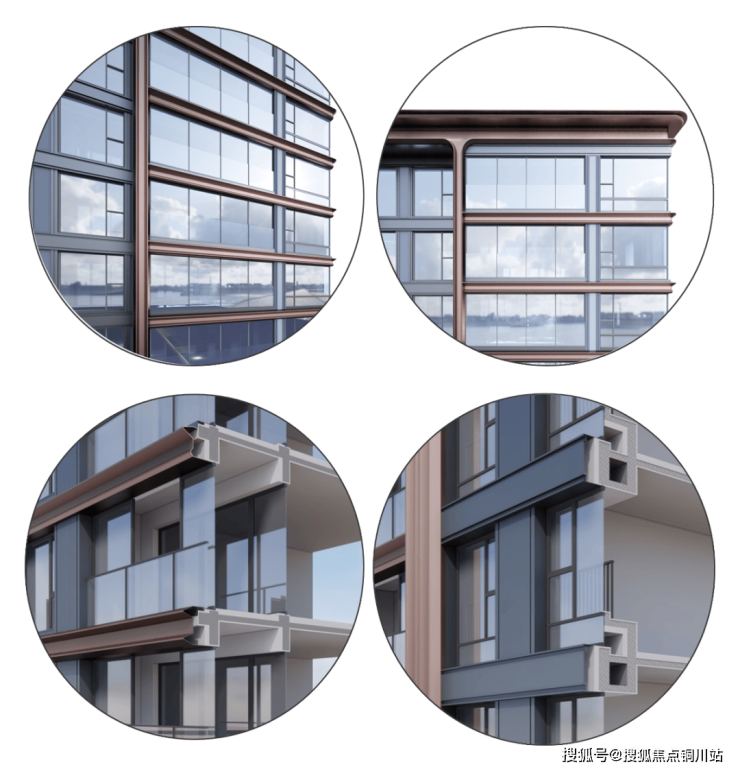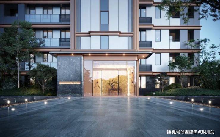 在外立面的打造上,对标国内外一线豪宅配置,大面积使用金属铝板+巨幕玻璃组合,再配以简约的“弧线”,展现通透纯净、轻盈典雅的国际化形象;自下而上生长的竖向线条与横向流动的圆弧线条交叉勾勒,带来立体、流畅的视觉冲击,以光影镜幕的流光艺术为灵感,打造出别具神韵的独有“鎏光感”。