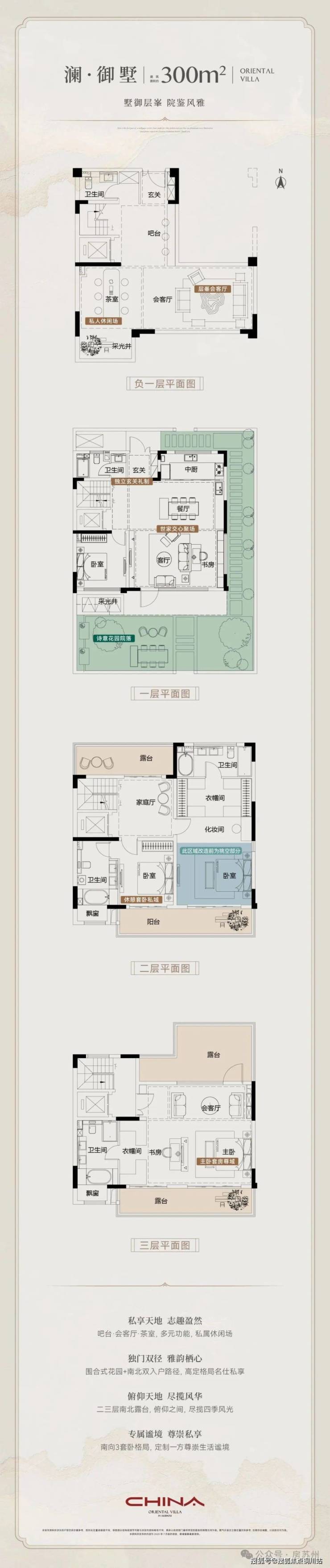 以约270㎡为例,地上三层,带南北双庭院+全屋4个露台/阳台;客厅挑高高赠送,二楼是家庭客厅+朝南双套房,三楼是整层套房,尺度颠覆!