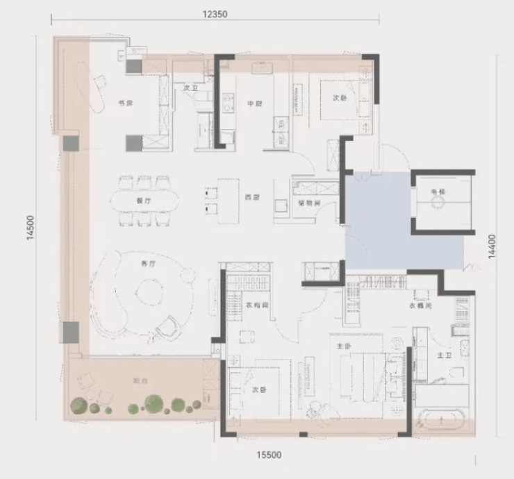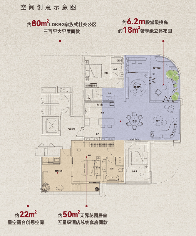 真四代更夸张:空中花园,平台、阳台岔着送!联发向湖已经把得房率干到126%了!双空中花园,双入户,80㎡大方厅,50㎡主卧套房!