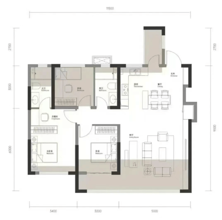 到了今年6月份,已经整间房这样送了!95平给你干出一个3房2卫+5米1的大横厅。