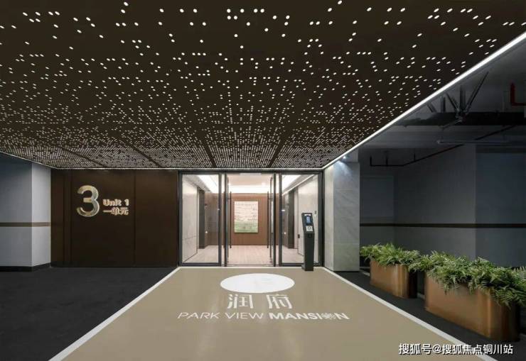 润府设置了双精装入户大堂,一楼精装入户大堂,单元门头采用了大面积的铝板进行装饰,室内墙地面均使用大板砖铺贴。