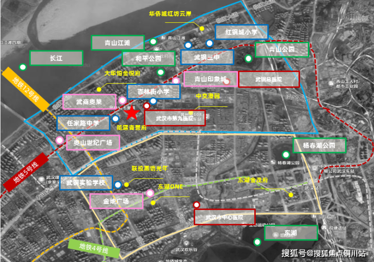 具体来看,项目距大型商业体武商奥莱约400米,1.5公里范围内覆盖青山印象城、奥山世纪广场等商业体,距武汉市第九医院约150米,距武钢总医院约2.5公里。