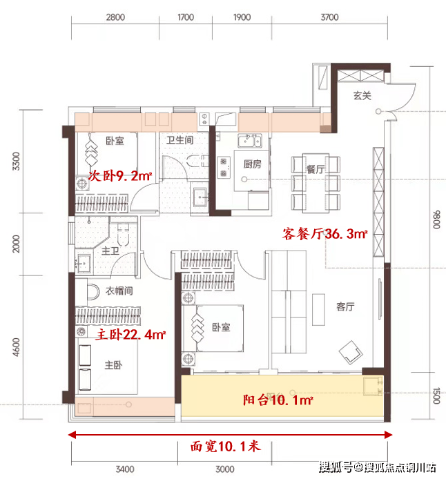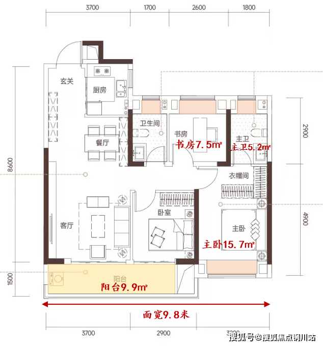 特点1:约9.8-10.1米的南向面宽,室内通风采光效果佳