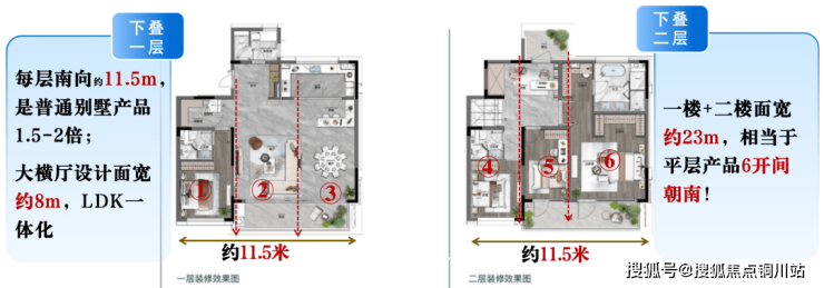 而樾府全新升级版每层3个面宽 ,每户实际得到的是6面宽(下叠)甚至9面宽(上叠),IMAX巨幕采光面,堪比大平层一整个单元的采光尺度!
