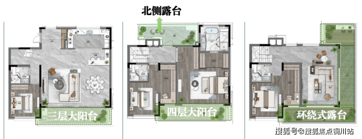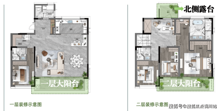 再看约319平上叠,四楼(北侧)+五楼(转角露台)赠送露台约40㎡左右,看星赏月、围炉夜话喝茶、家庭BBQ…