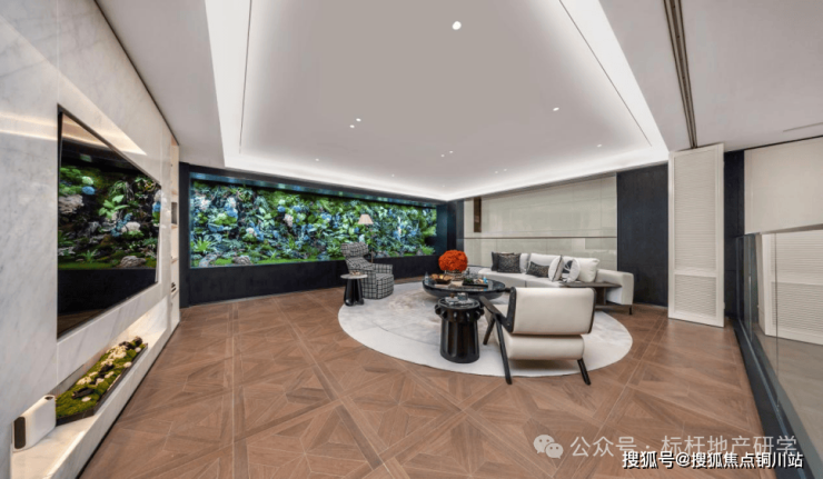 革命性的"向下社交"理念:约6.1米挑高的地下室,引入四维采光设计,将其从储藏间解放为孩子奔跑攀岩的梦想乐园,亦或是世家宴请中心。