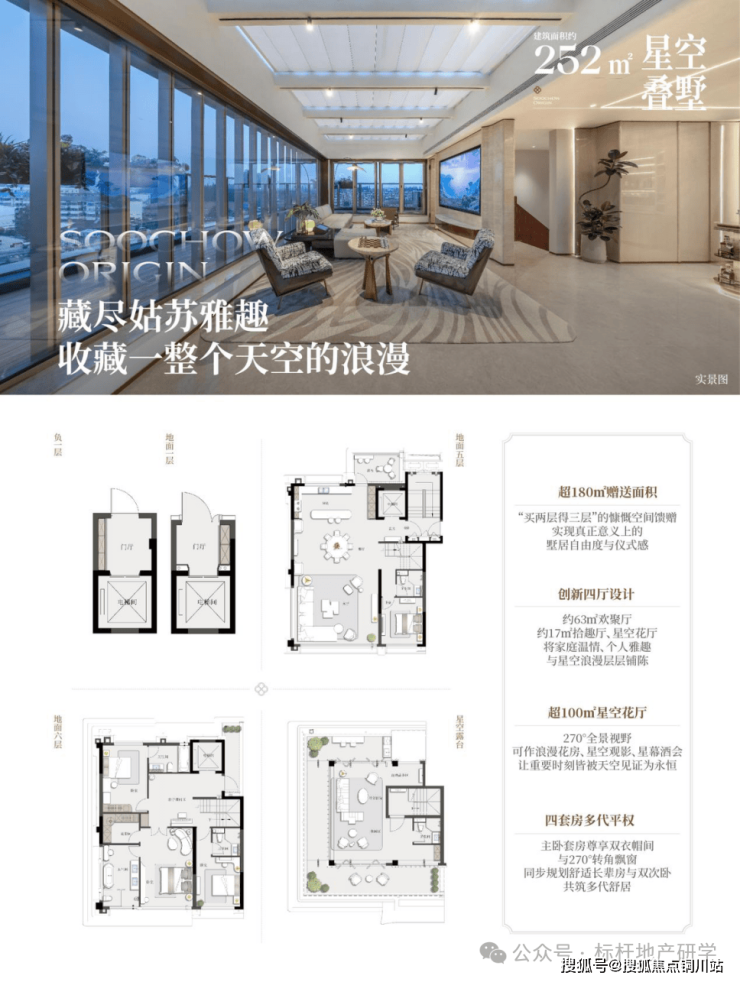 星空花厅创新:超100㎡顶层空间,搭配270°全景视野,突破传统屋顶局限,创造星空下的浪漫生活场景。