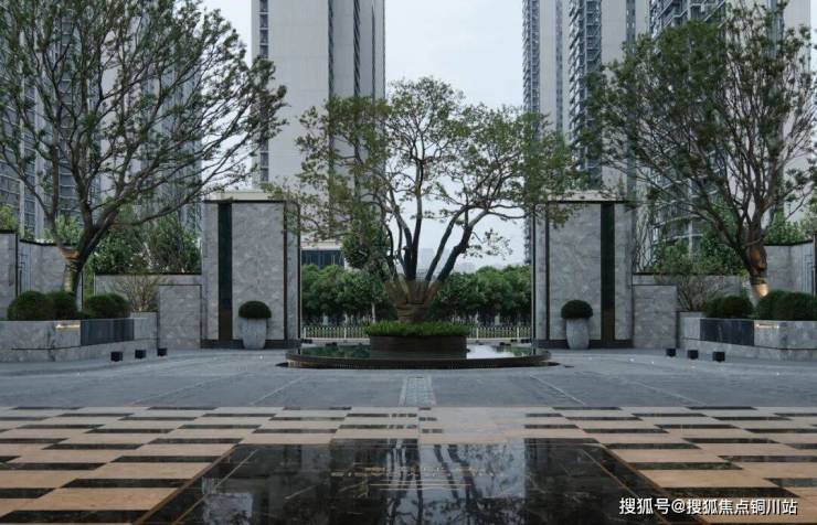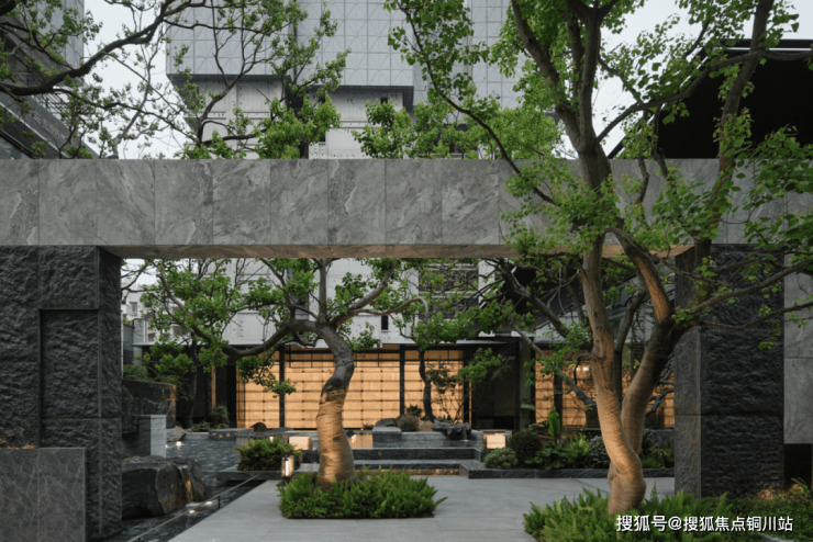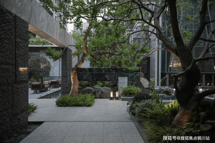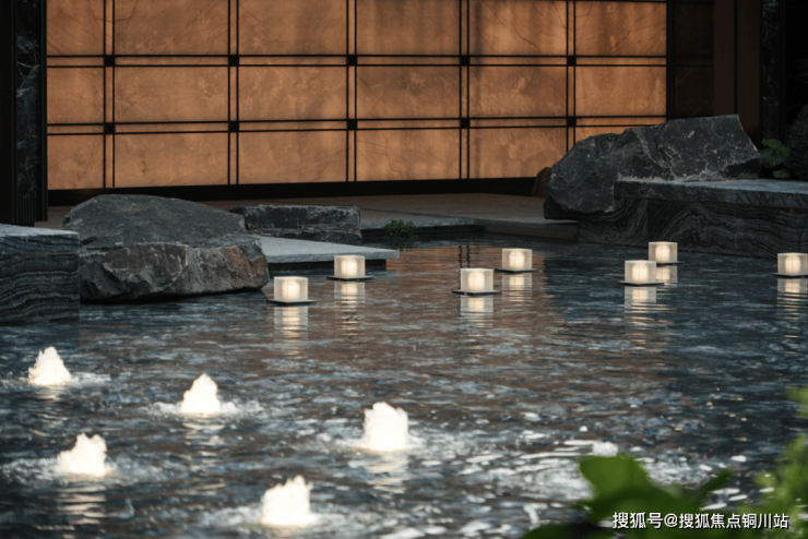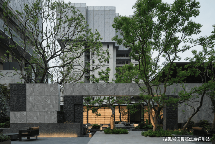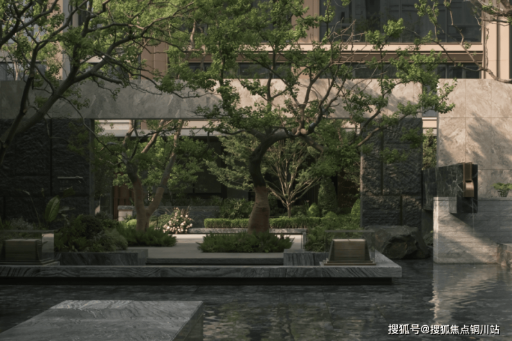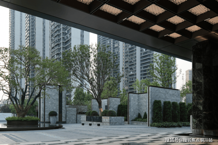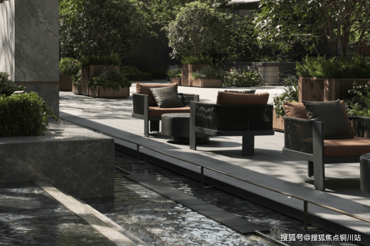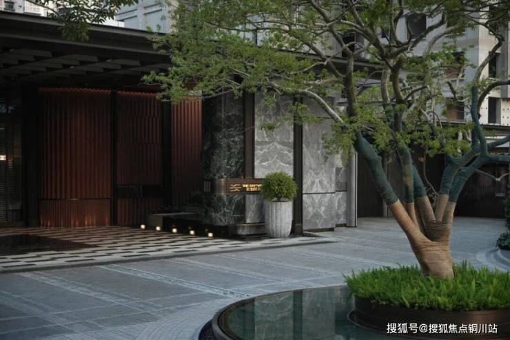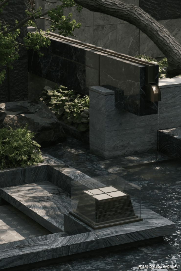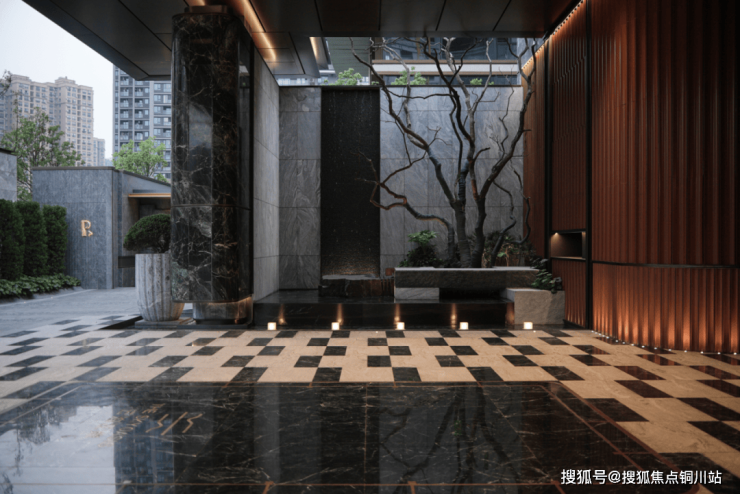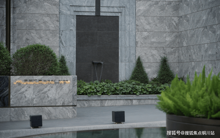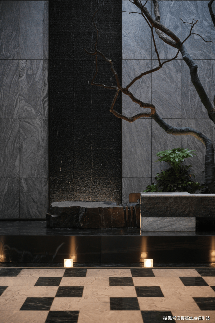 细腻而克制的肌理,像是精神世界的写意表达。方寸之间,精致的叠水空间从有界延展出无界,水流律动、立面延伸、树木生长,它们在动态的平衡中构筑了一幅精美的艺术风情画,又在流动的空间里,让归家的人忘却时间,放下一切喧嚣,在仪式和静谧中,体悟自然与生命的流动,感受此刻的奢雅与从容。
