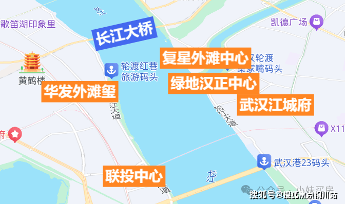 汉口的武汉天地御江苑三期、滨江苑与上面几个项目隔江对望,景观效果是差不多的。