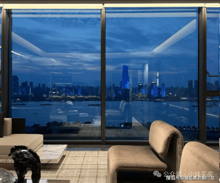 而且因为是写字楼公寓产品,全为玻璃幕墙,瞰江效果比它的住宅楼还要更好一些。
