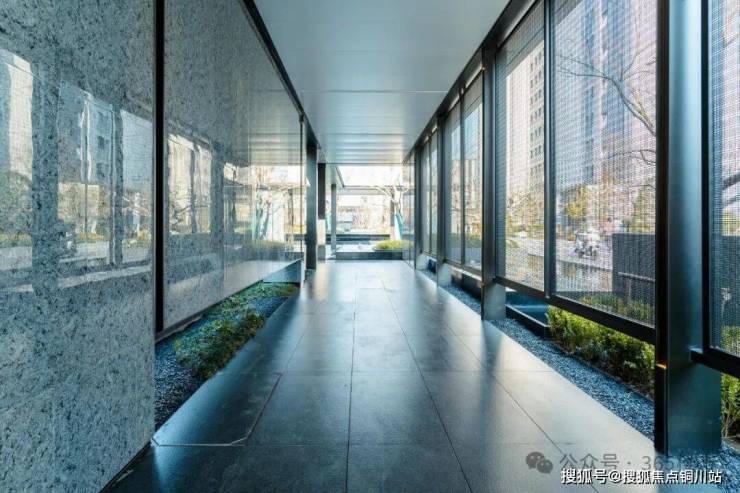而穿过大门向内望去,金属格栅似隔非隔,透风漏月,转合之间将空间美学与江南诗画气韵体现出来,这就是项目的“画廊巷里”。