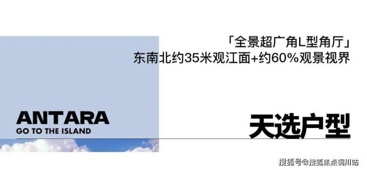 户型规划亦顺应江景及规划肌理,打造全景超广角观江的L型角厅户型——通过东向、南向双阳台设计,使整个产品拥有约60㎡的可观江景公区面积。形成270°视野,打造约6.6m的“观景角厅+环幕双阳台”的双向落地窗格局。把“东+南+北”所有能观景的面都打开,构成一个约35m宽观江面、近60%的观景视界(河西对岸只可西侧或北侧局部观江)。