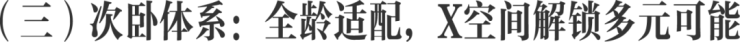 3间次卧均做到开间约3米、进深约3米的方正格局,拒绝“伪房间”,保障每间房的舒适感与实用性。其中1间带独立卫生间,成为尊崇套房,适配子女居住;1间紧邻公卫,动线人性化,方便长辈日常起居,是理想的长辈房;尤为关键的是与主卧相邻的“X-Space”幻变空间,其价值随家庭周期动态变化:家庭人口高峰期可作为起居空间,满足多成员居住需求;孩子成长阶段需要陪伴时,可改造为亲子学习空间或办公空间,方便父母照看与辅导;当家庭人员减少,又能变身家庭兴趣空间,无论是电竞室、琴房还是书房,都能精准匹配需求,让空间使用率始终保持高位。