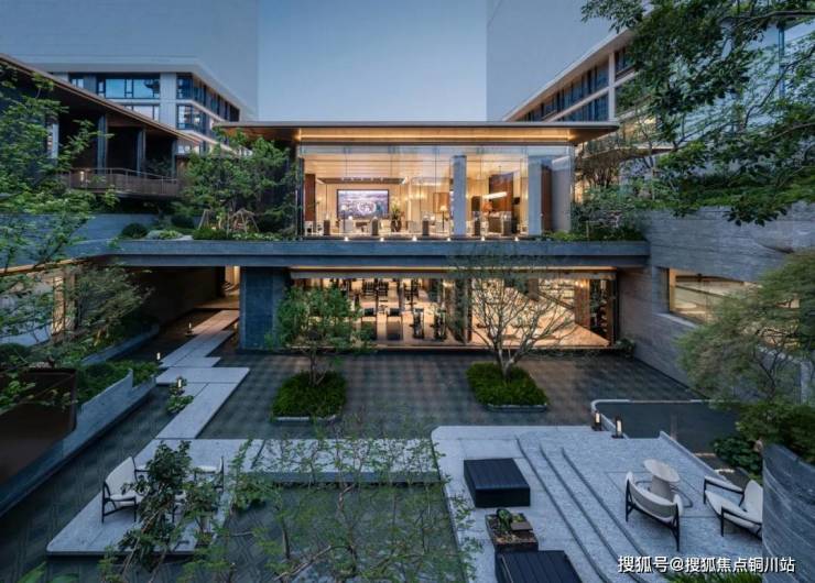 丽香庭借鉴古典入园空间序列,打造多重院落、层层递进的归家礼序。地块整体抬高约3.7米,最大高差超过7.5米的下沉庭院,以微妙的视觉层次划分功能空间,通过散点布局、小空间组织,消解空间中心;自然山水垂直铺展,形成多维“立体庭院”。游廊曲折、台地错落,行走其间,循着自由灵动的立体游园路径,忘园入画,化境归心。