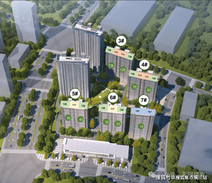 [梯户比]:两梯两户(7#)两梯三户(5#、6#)两梯四户(3#、4#)