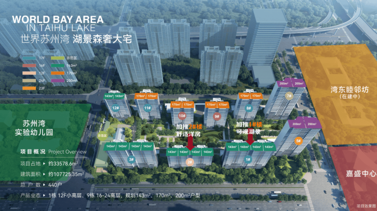 项目拟建1栋12F的洋房、9栋16-24F高层,建筑面积约143-200m²湖景森奢大宅。