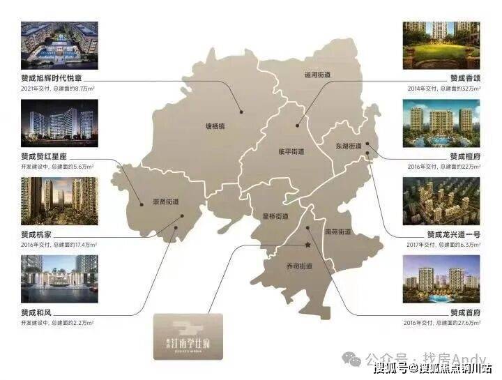 2010年,赞成集团入主临平区主城,陆续开发了赞成檀府、赞成首府、赞成香颂、赞成杭家、赞成龙兴道一号、赞成和风、赞成赞红星座、赞成旭辉时代悦章等众多高品质楼盘。时隔13载,赞成集团再度以代表作-赞成汀南学仕府,入主临平南融杭州主城板块,致力于打造文脉与现代、城市与自然,和谐包容,相互共生的地标级作品。