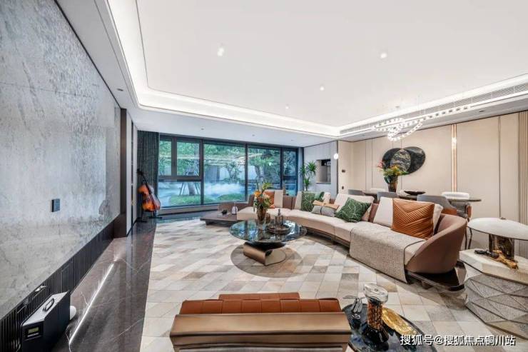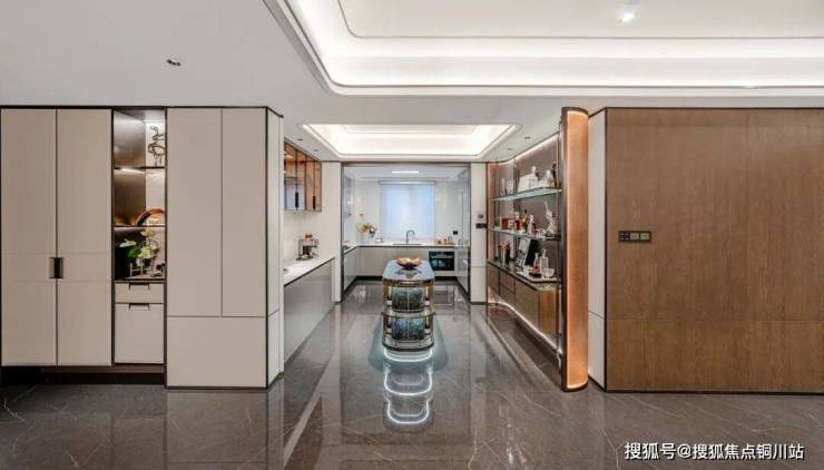 首层精装入户大堂,入户即见巴西奢石装饰,约4.8米挑高,约6.35米面宽,无主灯吊顶设计,尽显空间轩朗大气,地面采用900*1800大砖通铺,细节之处,可鉴严苛标准。