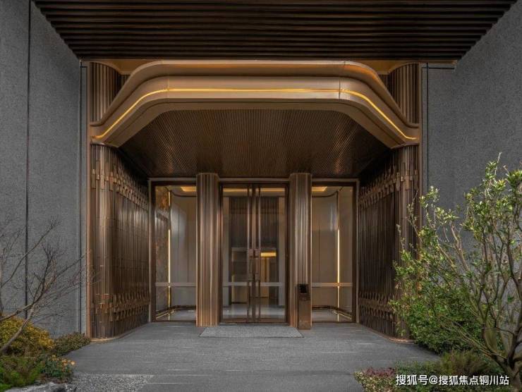 入户单元门配置定制级古铜色不锈钢格栅立柱,燕尾锁等东方纹饰点缀其间,出入之间,尽显尊荣。