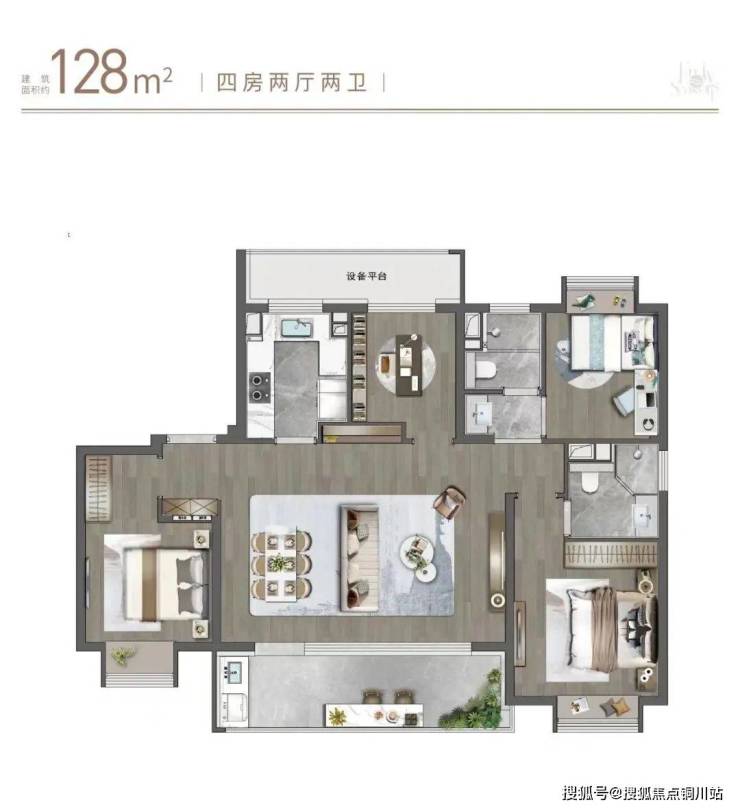 四房两厅两卫设计,为全生命周期户型,无论三口之家、二孩家庭或是三代同堂皆能满足居住需求,为人生每一阶段加冕。