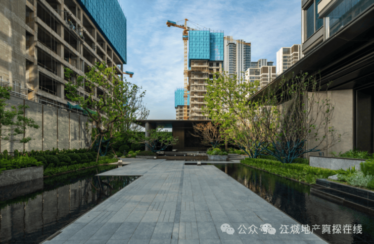 社区内,有大量水景,与绿植、地灯等搭配辉映。